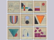 Serie je 20 x 20 cm, Collage (Sarte: Le mythe de Sisyphe), Acryl, Kugelschreiber, Bleistift auf Leinwand