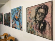 Dyptichon je 60 x 120, Acryl, Tusche, Wachs, Kugelschreiber auf Leinwand