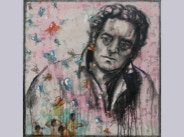 80 x 100 cm Collage, Acryl, Wachs, Kugelschreiber auf Leinwand