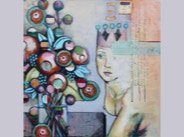 70 x 100 cm Collage, Acryl, Kaltwachs, Kugelschreiber auf Leinwand