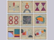 Serie je 20 x 20 cm, Collage (Sarte: Le mythe de Sisyphe), Acryl, Kugelschreiber, Bleistift auf Leinwand
