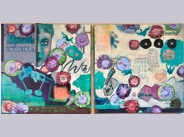 Dyptichon je 40 x 40 cm, Collage, Acryl, Tusche, Kaltwachs, Kugelschreiber auf Leinwand