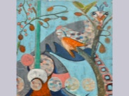 70 x 100 cm Collage, Acryl, Kaltwachs, Kugelschreiber auf Leinwand